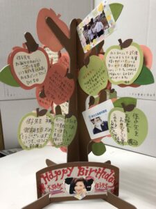 なんとスタッフがサプライズでお祝いをしてくれた(驚!!)..本当に驚いた!クラッカーの雨にハッピーバースデー合唱..メッセージツリー