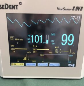 術中は継続的に生体モニターを装着(入院ベッド脇にモニターがありますよね?あれです)しながら患者さんのバイタルチェックも並行して安全第一に行われています。