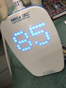 手術の成功是非はISQと呼ばれる特殊な計測器で測られる。手術直後に65以上あればまず良しとされるが、この高難易度のオペを我が医院の理事長は20分と言う短時間でISQ 85まで上げてくる‼︎ 大成功は言うまでもない数値