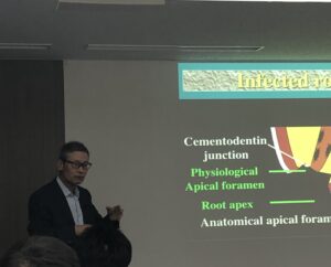 午前中に診療所でお仕事、午後から尊敬して止まぬ福岡の巨匠、元永三先生の研修会に参加して参りました。感染根管(腐敗した歯根)の根本的治療アプローチについてのお話は本日4回目の受講で、歯科の治療は『原因除去』とその後に続く『環境整備』が全てだと話されます。毎回新しい発見とその真髄が見えてくる貴重な講義でした。同じ研修会に参加している猪子医師ともよくこれについて協議しカンファレンスの大事な基本になっています。