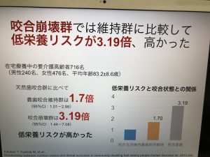 2025年には日本人の65%を締める超高齢化社会に伴う口腔内全般(歯.顎.咀嚼筋.唇.口蓋.頬.唾液.舌)の協調.調和で口から食べ物をとり、しっかり噛んで嚥下することの重要性について、口腔リハビリテーションを専門に勉強している市川医師(週1で出勤中の非常勤務医)の特別講義をスタッフで聴講。