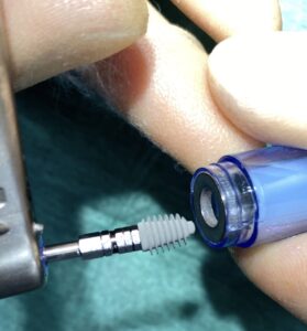午後イチからは、理事長のオペが行われました。右上4番の抜歯即時埋入(抜歯と同時にインプラント埋入オペ)