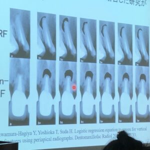 今夜は同僚の猪子先生と『歯根破折』の診断を勉強します。歯根破折した歯は残念ながら基本的には抜歯対象です。破折の好発は神経治療済みの歯、年齢は40才過ぎから多くなり、歯周病ポケットが深い、食いしばり習癖、不良補綴物、硬い物を好む方、etc..の原因で起こる予測不可能な場合が多いのです。