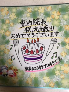 90才にもなると『健康』と『自活』が望みとなるようで、物に拘らなくなります。そんな父へのプレゼントをスタッフに相談したところ..こんな素敵な寄せ書を作ってくれました。