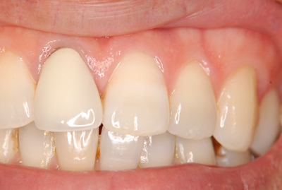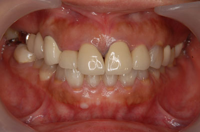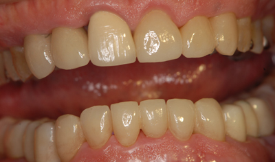 歯冠の長さも整えられ、セラミック装着により審美改善。