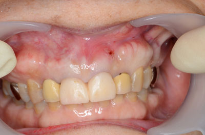 症例9【50代女性】主訴・前歯4本の根が見えるのが気になる。根面被覆(Root coverage)口蓋(上顎)から歯肉を採取し、露出している根面に歯肉を移植し被覆。