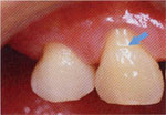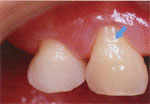 矢印のところが知覚過敏を起こしている部分。ふつうは見てもわからない。水や空気をかけると痛い。おいしく食事ができなかったり、日常生活が不快です。