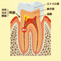 虫歯でもないのに「冷たいものがしみる」「歯がしみる」「歯ブラシが当たって痛む」などの症状を歯の知覚過敏症といいます。