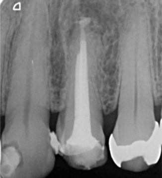 約半年の免荷期間を経て、仮歯を装着、リハビリをし、約7ヶ月後にメタルボンド(金属焼付ポーセレン)を装着。