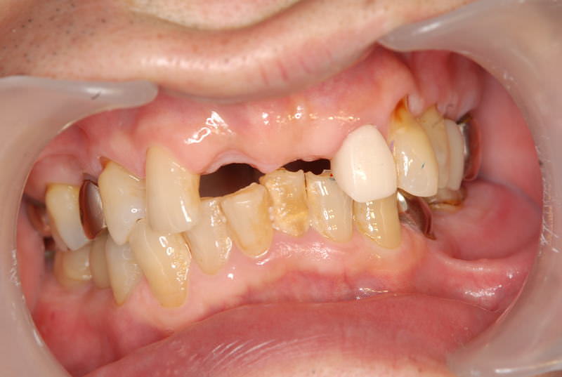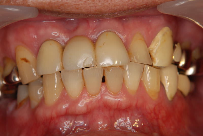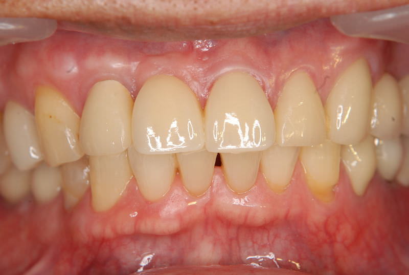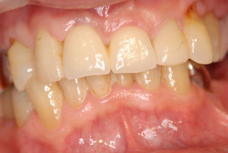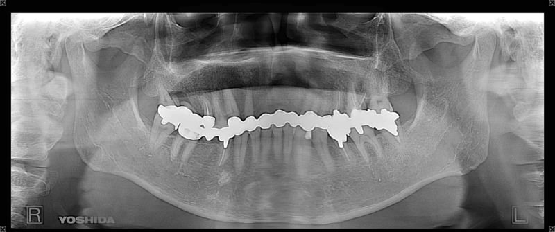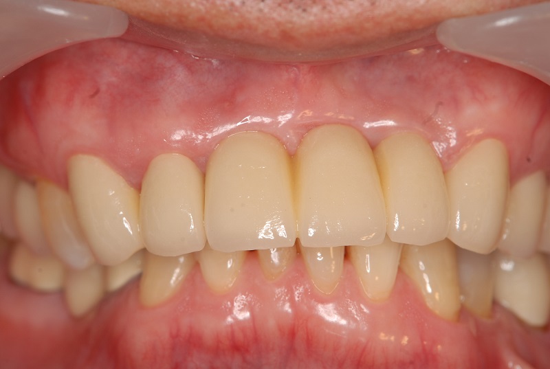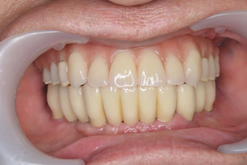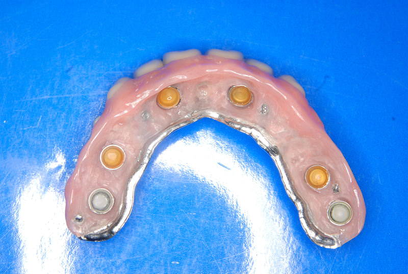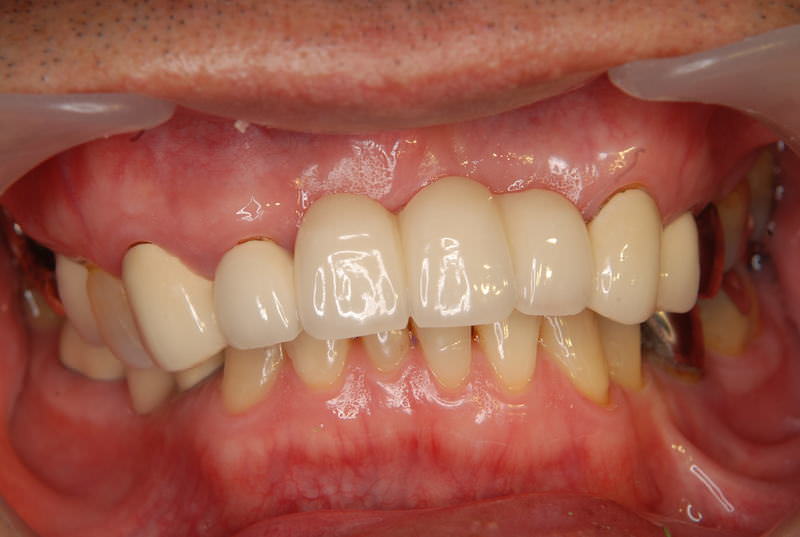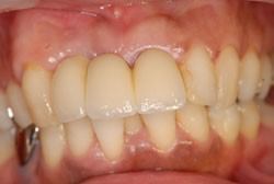 上顎の免荷期間は約4ヶ月、下顎の免荷期間は約2ヶ月を経て、仮歯を装着、リハビリをし、メタルボンド(金属焼付ポーセレン)を装着。