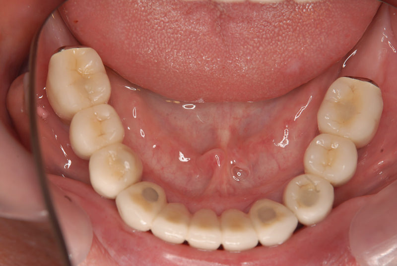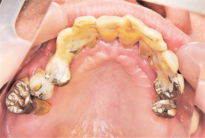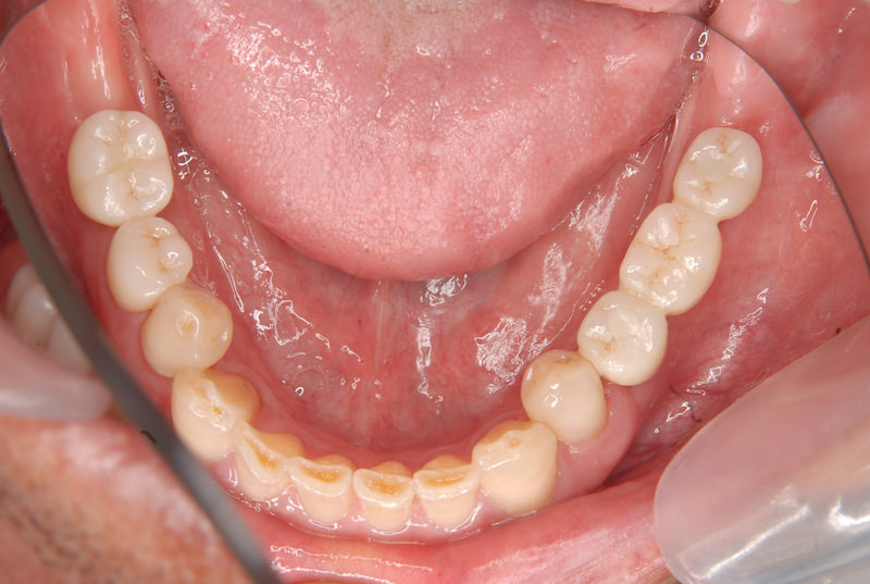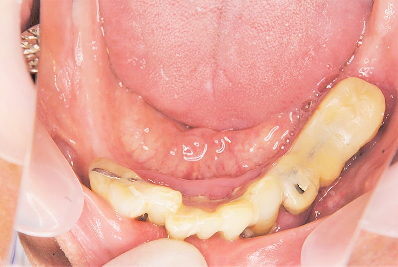 下顎は固定制のメタルボンドブリッジ(金属焼き付けポーセレン)を装着。