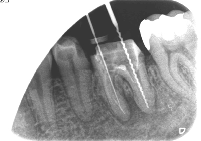 症例4【40代女性】根管の長さを正確に測り、殺菌・消毒を約5ヶ月間行うことにより、病巣はほぼ消失し、硬線が明瞭に見える。
